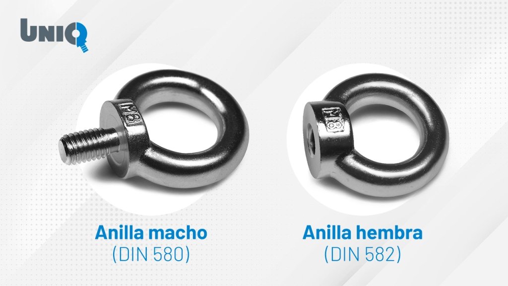 Descubre las diferencias entre anillas DIN 580 y DIN 582, cómo elegir la adecuada y las soluciones certificadas UNIQ de Damesa.