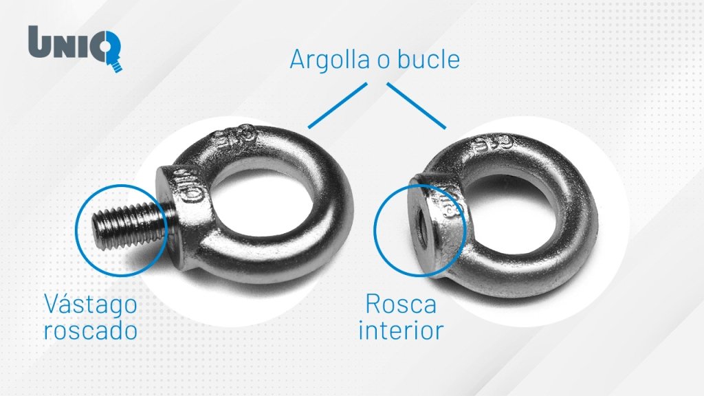Para que una anilla de elevación cumpla correctamente su función, es importante conocer sus componentes básicos y las compatibilidades entre elementos del sistema de izado:
