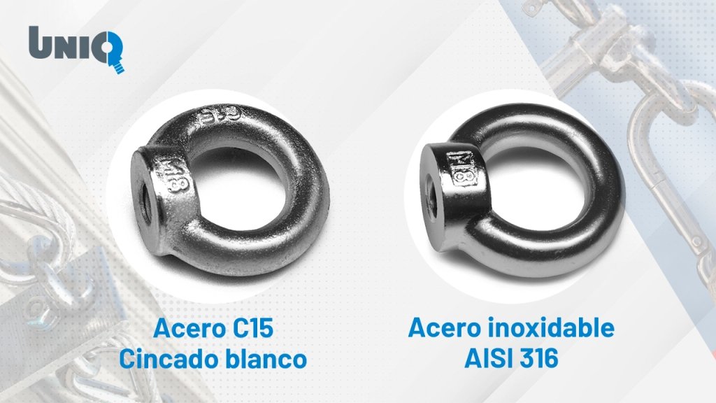 En aplicaciones marinas, químicas o alimentarias, donde la exposición a la humedad o agentes corrosivos es elevada, se recomiendan anillas de elevación en acero inoxidable, por su mayor resistencia a la oxidación y su bajo mantenimiento.